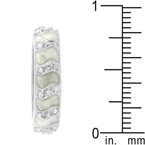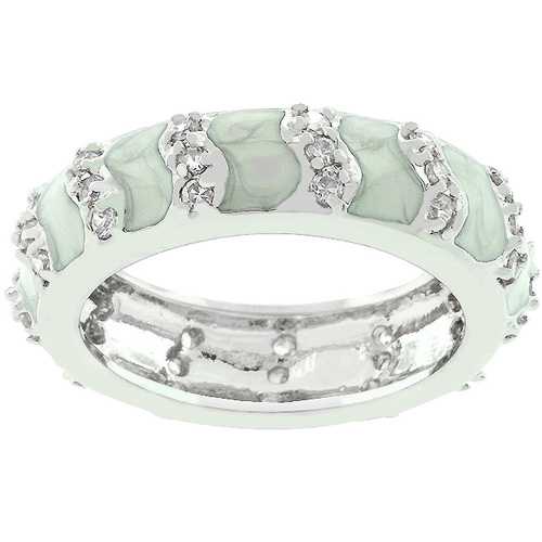 Gray Eternity Enamel Ring features a shiny silver tone with prong set mini cubic zirconia inlaid in an eternity style. Our genuine rhodium finish is achieved using an electroplating process that coats the item with heavy layers of rhodium a close cousin to platinum which gives our jewelry a platinum...