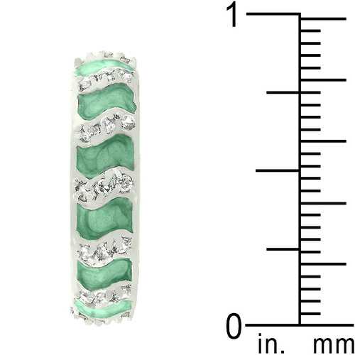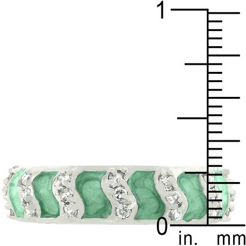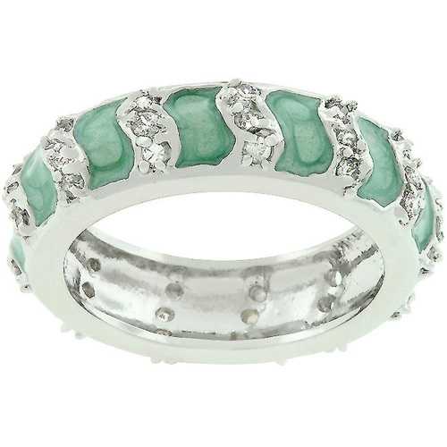 Aqua Eternity Enamel Ring features a shiny silver tone with prong set mini cubic zirconia inlaid in an eternity style. Genuine Rhodium Plating is achieved using an electroplating process that coats the item with heavy layers of rhodium a close cousin to platinum which gives our jewelry a platinum luster.Base...