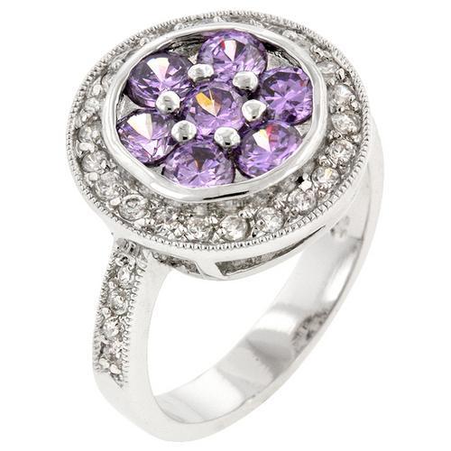 The Amethyst Purple Lily's delicate look displays seven amethyst cubic zirconia and an additional layer of clear accents. Genuine Rhodium Plating is achieved using an electroplating process that coats the item with heavy layers of rhodium a close cousin to platinum which gives our jewelry a platinum luster.Base Metal: Lead...