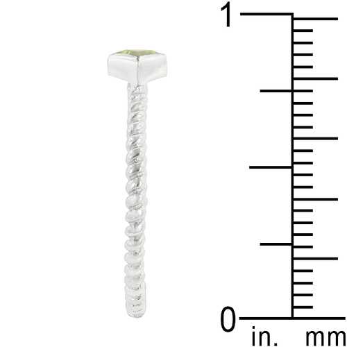 This petite solitaire ring features a unique twisting shank and a pretty peridot cubic zirconia. Genuine Rhodium Plating is achieved using an electroplating process that coats the item with heavy layers of rhodium a close cousin to platinum which gives our jewelry a platinum luster.Base Metal: .925 Sterling SilverStyle: ,...