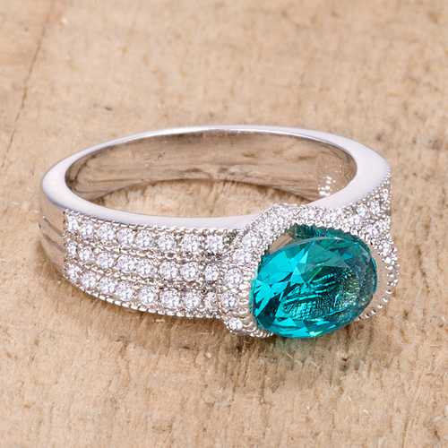 1.6 Ct Aqua Oval CZ Ring