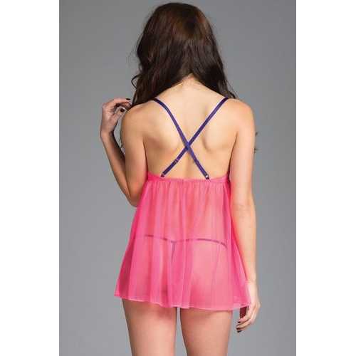 Go to the shop2-Piece Sheer Mesh Babydoll with lace cups and adjustable crisscross back straps Includes matching Thong