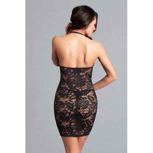 Go to the shopEyelash lace semi-sheer finish deep plunge neckline adjustable neck strap diamante strap detail figure-hugging shape