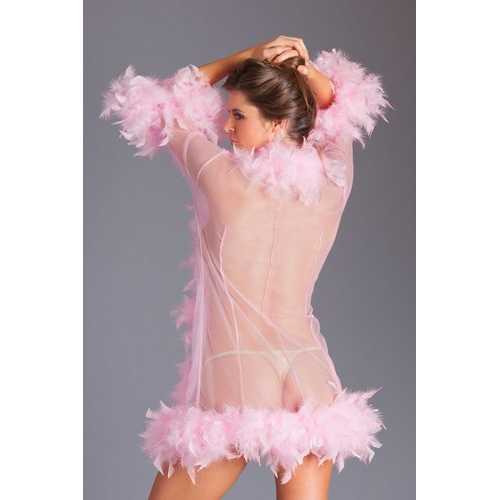 Go to the shopSheer short length robe with chandelle boa feather trim (Thong not included)